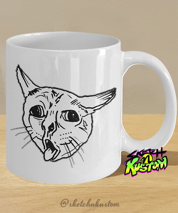 Ugly Coughing Cat Meme Mug Coughing Cat Mug Funny Ugly Cat Etsy